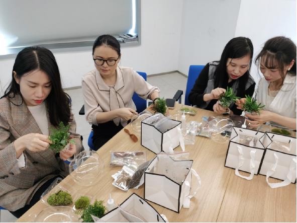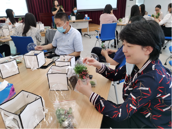 講座后,進(jìn)行現(xiàn)場(chǎng)互動(dòng),參加活動(dòng)的職工親自動(dòng)手,制作桌面微景觀盆栽。