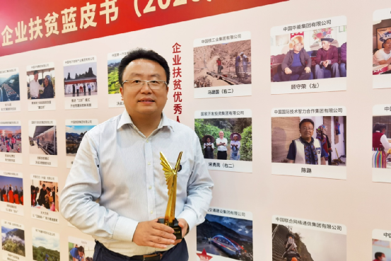 由國(guó)務(wù)院扶貧辦社會(huì)扶貧司主辦的2020年中國(guó)“企業(yè)扶貧年度人物”評(píng)選結(jié)果于近日揭曉。在中智集團(tuán)黨委領(lǐng)導(dǎo)下,在集團(tuán)扶貧辦的指導(dǎo)下,中智掛職云南省楚雄州大姚縣副縣長(zhǎng)陳路同志經(jīng)專(zhuān)家遴選,當(dāng)選2020年十大“企業(yè)扶貧年度人物”之一,扶貧事跡收入國(guó)務(wù)院扶貧辦主編的《企業(yè)扶貧藍(lán)皮書(shū)(2020)》?!暗诎藢弥袊?guó)慈展會(huì)”《企業(yè)扶貧藍(lán)皮書(shū)(2020)》發(fā)布會(huì)暨企業(yè)精準(zhǔn)扶貧高峰論壇公布獎(jiǎng)項(xiàng)并舉行頒獎(jiǎng)儀式。